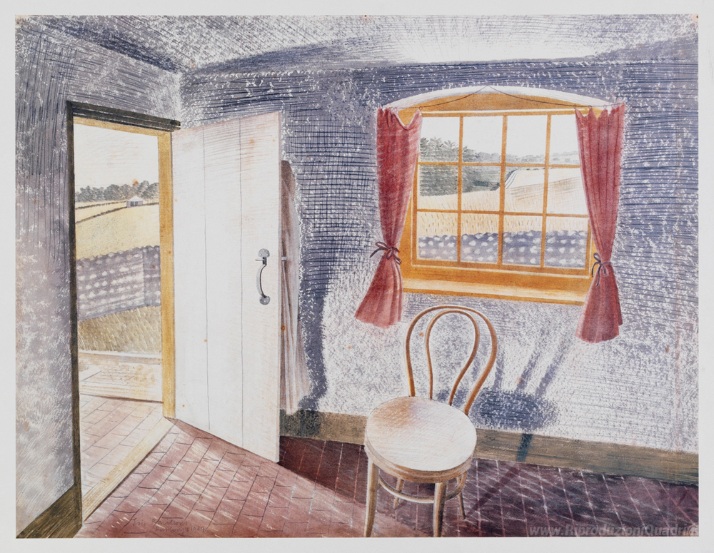 Ti offriamo una riproduzione artigianale su tela dell'opera famosa 'Interna a Furlongs' di Eric Ravilious, dal Museo delle Riproduzioni.