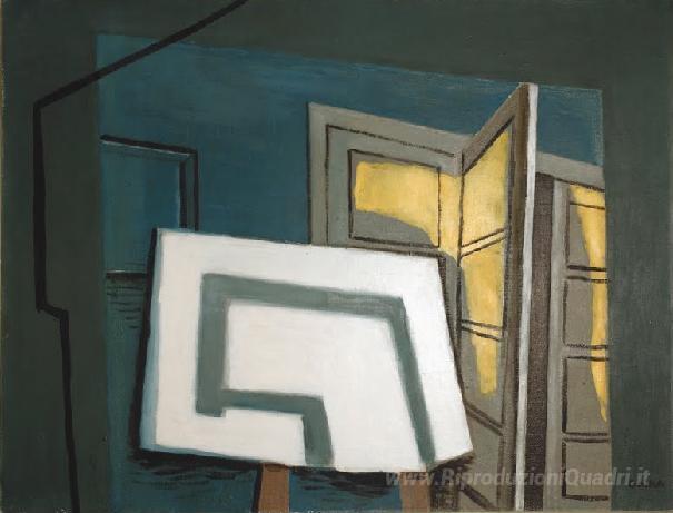 Ti offriamo una riproduzione artigianale su tela dell'opera famosa 'Interno con cavalletto III' di Nikos Hadjikyriakos-Ghikas, dal Museo delle Riproduzioni.