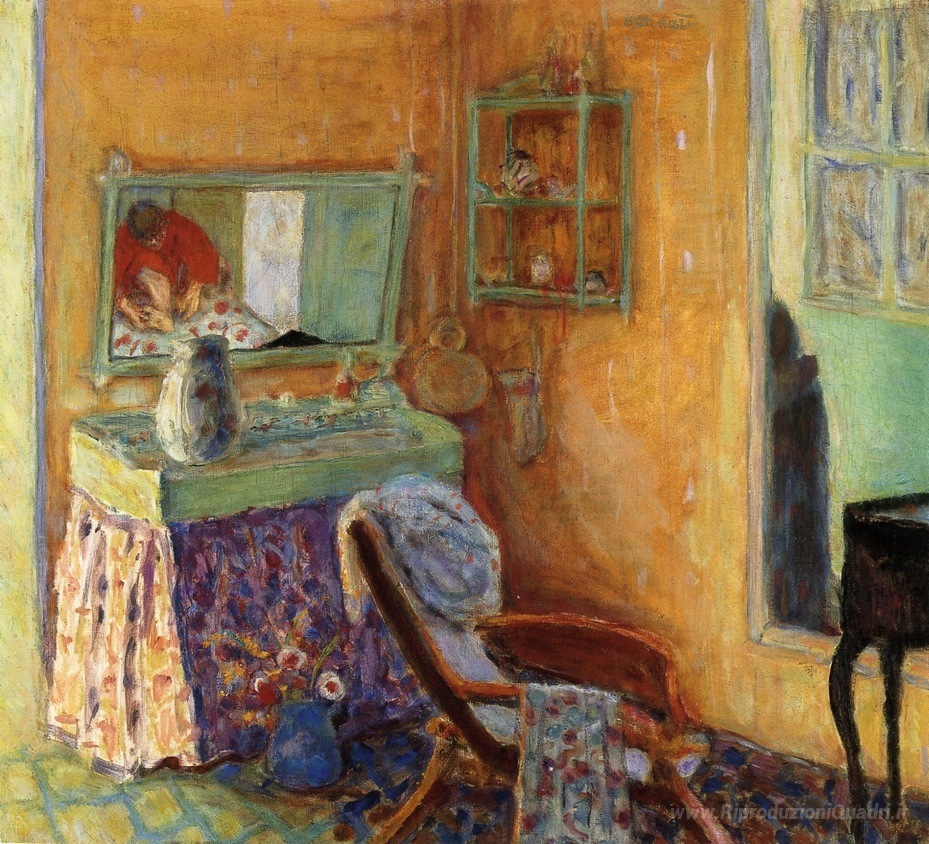 Ti offriamo una riproduzione artigianale su tela dell'opera famosa 'Interno' di Pierre Bonnard, dal Museo delle Riproduzioni.