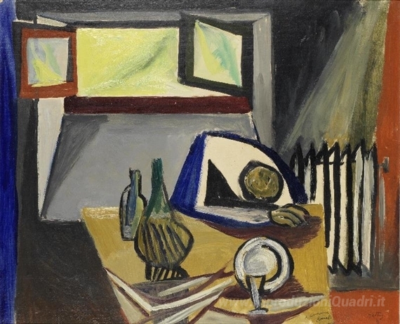 La tecnica dell’olio su tela consente a Guttuso di giocare con la luce e le ombre, mentre i dettagli minuziosi coinvolgono lo spettatore in un’atmosfera calda e accogliente. Questo dipinto non è solo un pezzo d'arte, ma un elemento di arredo capace di esaltare ogni ambiente, rendendolo più intimo e affascinante. Porta a casa tua un'opera di grande impatto visivo e emotivo, firmata da uno dei più significativi artisti italiani della storia.