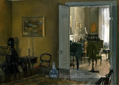 Ti offriamo una riproduzione artigianale su tela dell'opera famosa 'Interno' di Jacob Collins, dal Museo delle Riproduzioni.