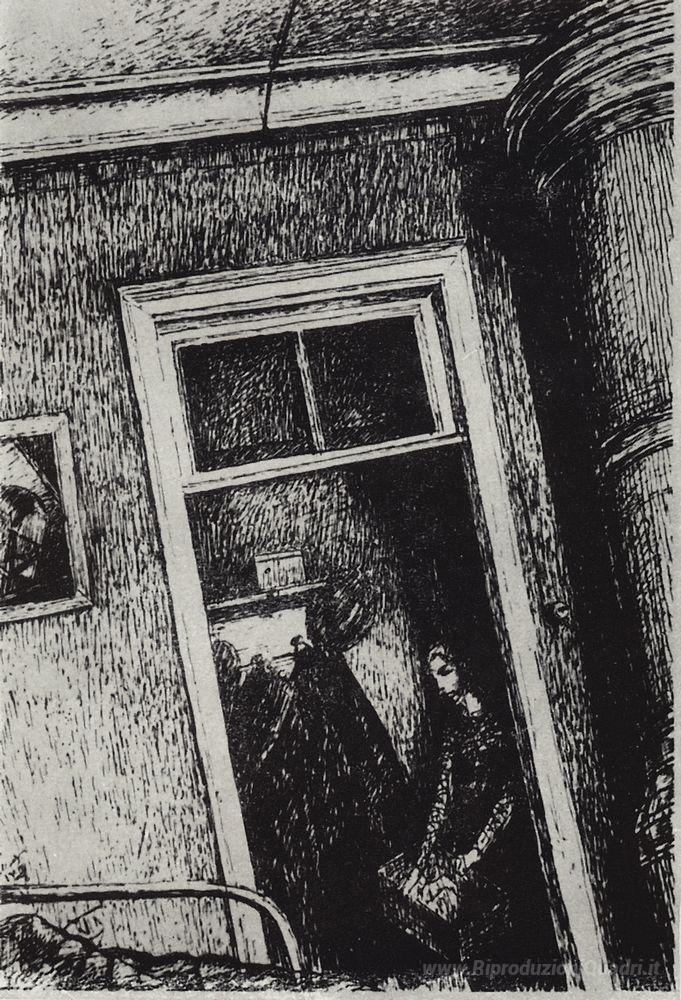 Ti offriamo una riproduzione artigianale su tela dell'opera famosa 'Interno' di Kuzma Petrov-Vodkin, dal Museo delle Riproduzioni.