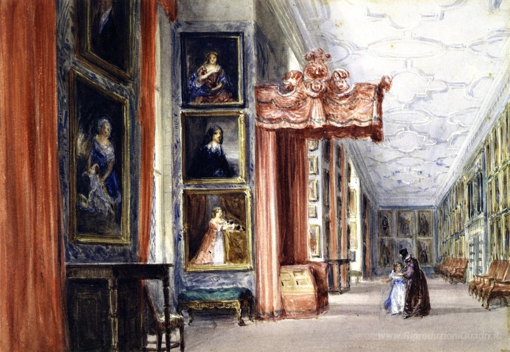 Ti offriamo una riproduzione artigianale su tela dell'opera famosa 'La Long Gallery, Hardwick Hall, Derbyshire' di David Cox, dal Museo delle Riproduzioni.