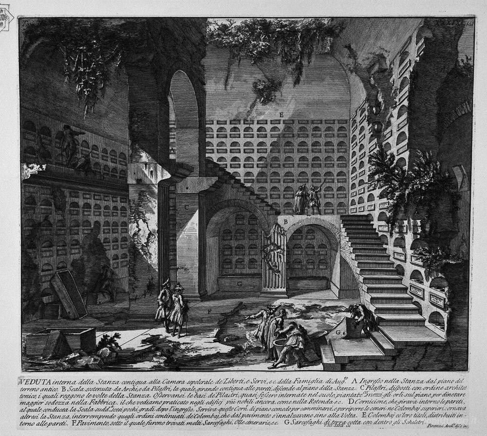 Ti offriamo una riproduzione artigianale su tela dell'opera famosa 'Le antichità romane, t. 3, Piatto XXXIX. Vista interna della sal' di Giovanni Battista Piranesi, dal Museo delle Riproduzioni.