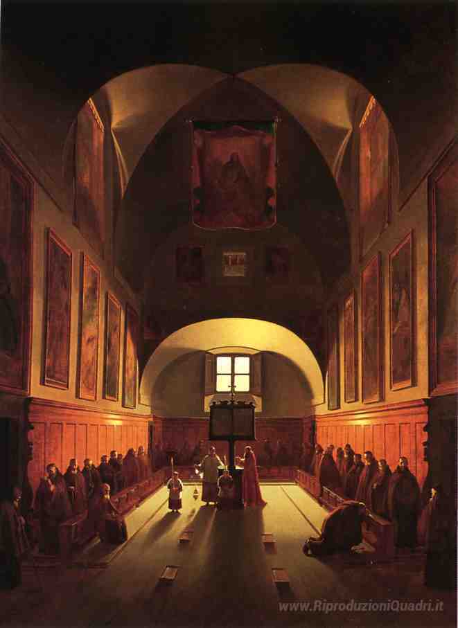 Ti offriamo una riproduzione artigianale su tela dell'opera famosa 'L'interno della Cappella dei Cappuccini In piazza Barberini (dop' di Thomas Sully, dal Museo delle Riproduzioni.