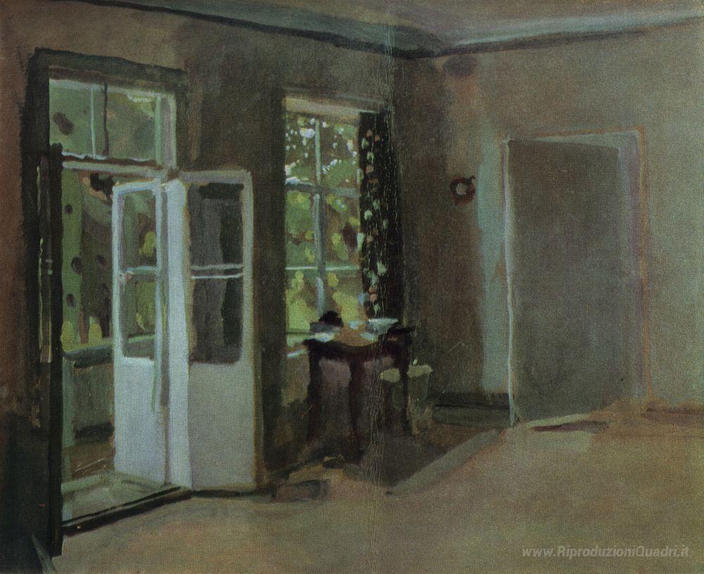 Ti offriamo una riproduzione artigianale su tela dell'opera famosa 'L'interno. Seconda parte' di Konstantin Somov, dal Museo delle Riproduzioni.