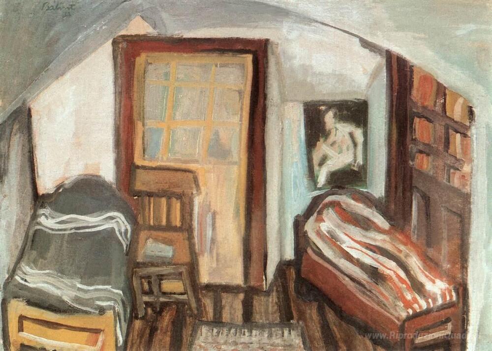 Ti offriamo una riproduzione artigianale su tela dell'opera famosa 'Mia stanza al Bindendorfs' di Endre Balint, dal Museo delle Riproduzioni.