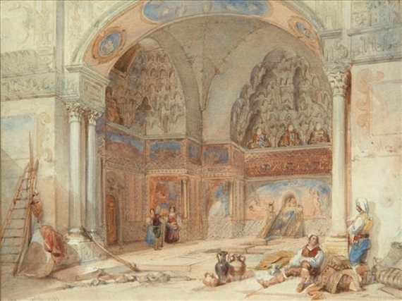 Ti offriamo una riproduzione artigianale su tela dell'opera famosa 'Moschea interno' di William Leighton Leitch, dal Museo delle Riproduzioni.