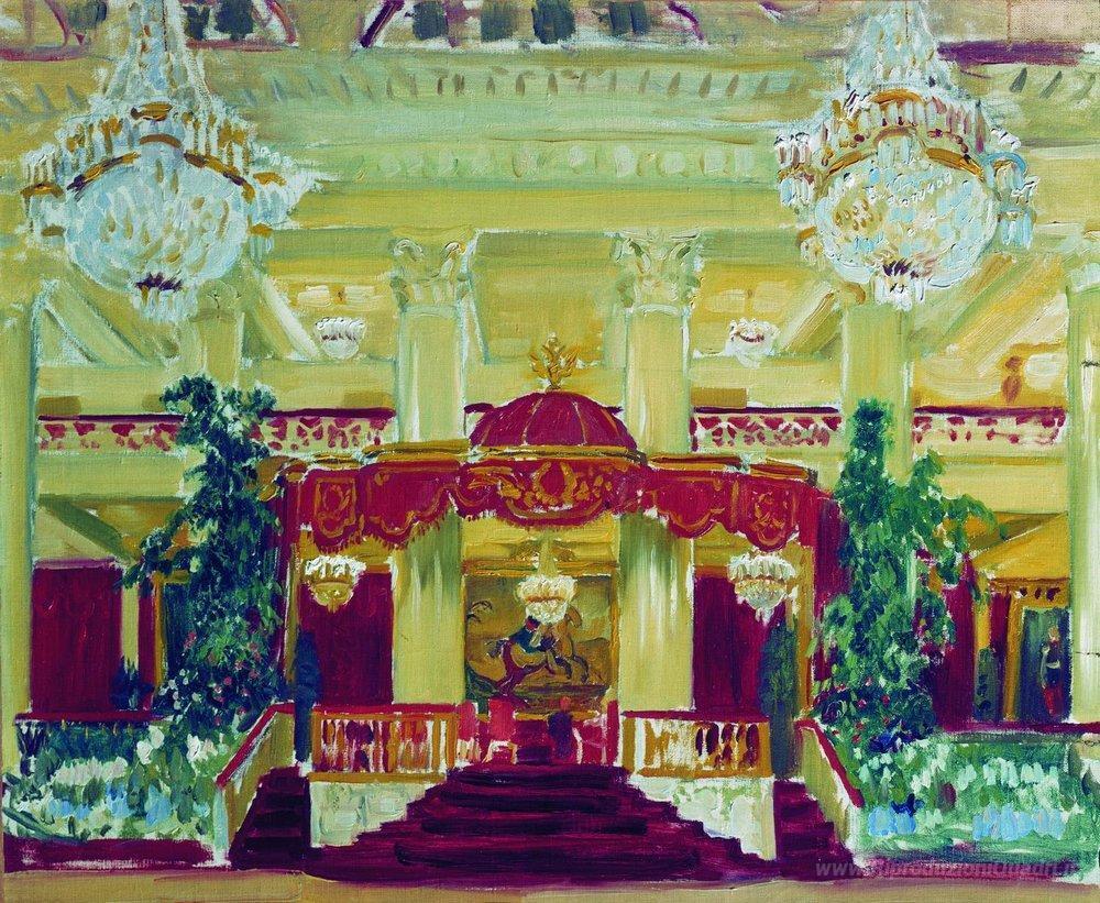 Ti offriamo una riproduzione artigianale su tela dell'opera famosa 'Nobiltà Assembly Hall di San Pietroburgo' di Boris Kustodiev, dal Museo delle Riproduzioni.