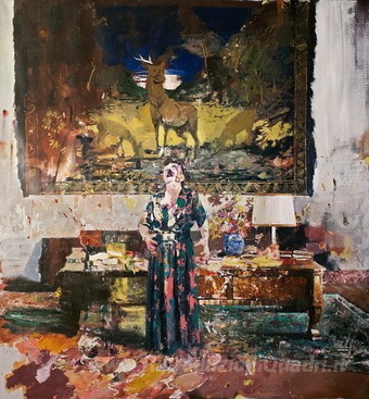 Ti offriamo una riproduzione artigianale su tela dell'opera famosa 'Pie Lotta Interior 8' di Adrian Ghenie, dal Museo delle Riproduzioni.