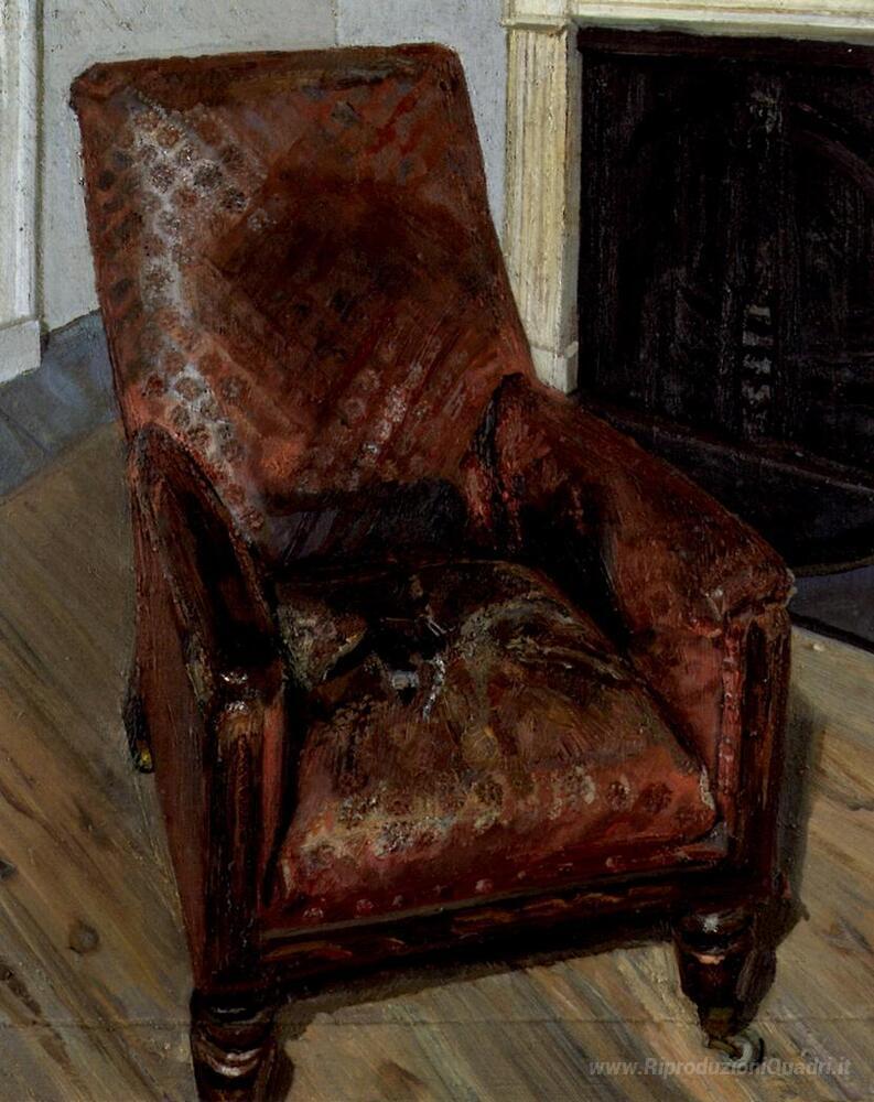 Ti offriamo una riproduzione artigianale su tela dell'opera famosa 'Poltrona accanto al camino' di Lucian Freud, dal Museo delle Riproduzioni.