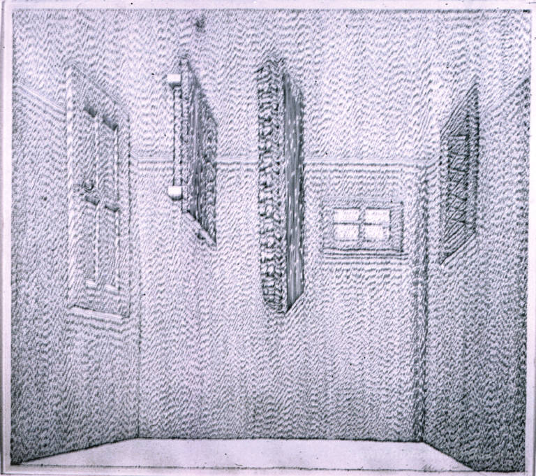 Ti offriamo una riproduzione artigianale su tela dell'opera famosa 'Porta, Specchio, Tavolo, Basket, Tappeto, Finestra' di Richard Artschwager, dal Museo delle Riproduzioni.