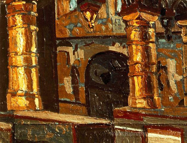 Ti offriamo una riproduzione artigianale su tela dell'opera famosa 'Rostov Velikij. Interno della chiesa di Salvatore.' di Nicholas Roerich, dal Museo delle Riproduzioni.