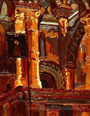 Ti offriamo una riproduzione artigianale su tela dell'opera famosa 'Rostov Velikij. Interno della chiesa di Salvatore.' di Nicholas Roerich, dal Museo delle Riproduzioni.