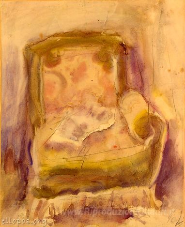 Ti offriamo una riproduzione artigianale su tela dell'opera famosa 'Sedia' di George Bouzianis, dal Museo delle Riproduzioni.