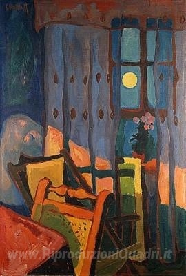 Ti offriamo una riproduzione artigianale su tela dell'opera famosa 'Serata in camera' di Karl Schmidt-Rottluff, dal Museo delle Riproduzioni.