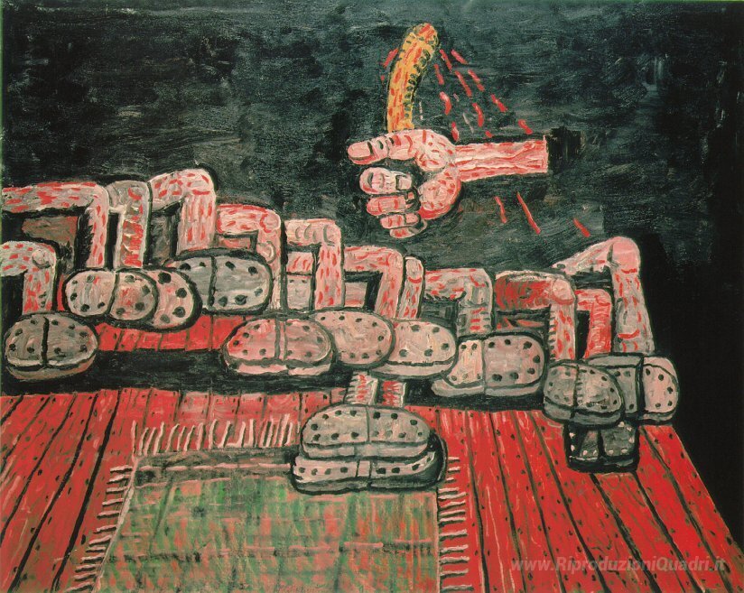 Ti offriamo una riproduzione artigianale su tela dell'opera famosa 'Stanza' di Philip Guston, dal Museo delle Riproduzioni.