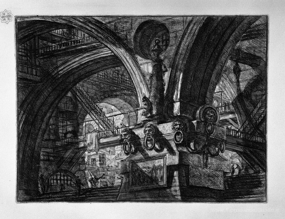 Ti offriamo una riproduzione artigianale su tela dell'opera famosa 'The Pier con una lampada' di Giovanni Battista Piranesi, dal Museo delle Riproduzioni.