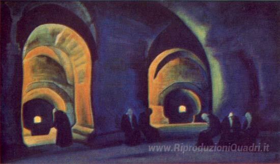 Ti offriamo una riproduzione artigianale su tela dell'opera famosa 'Torre del terrore' di Nicholas Roerich, dal Museo delle Riproduzioni.