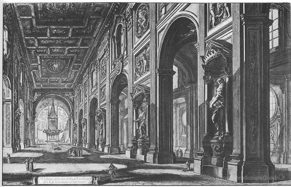 Ti offriamo una riproduzione artigianale su tela dell'opera famosa 'Vedute di Roma' di Giovanni Battista Piranesi, dal Museo delle Riproduzioni.