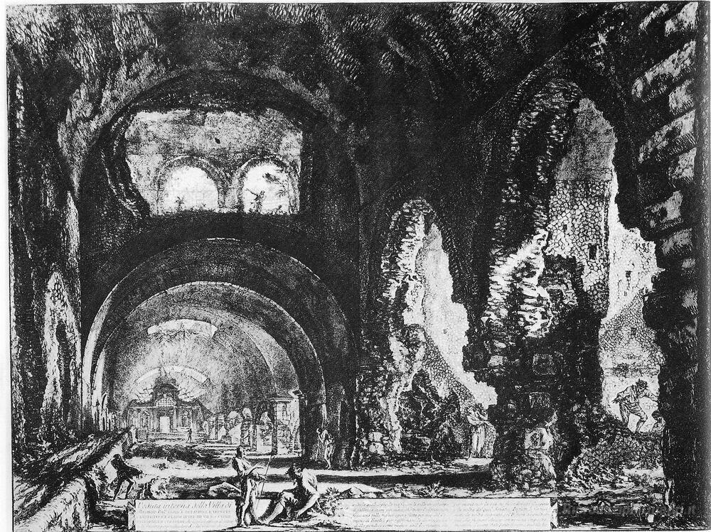 Ti offriamo una riproduzione artigianale su tela dell'opera famosa 'Vedute di Roma' di Giovanni Battista Piranesi, dal Museo delle Riproduzioni.