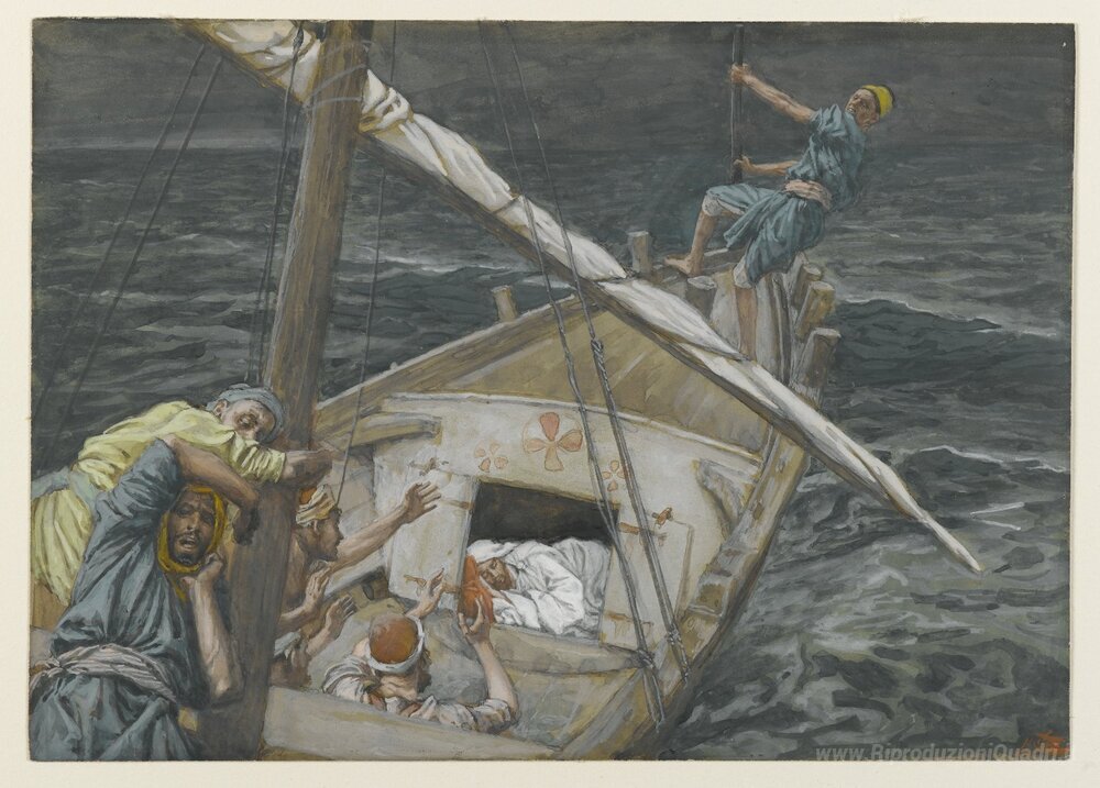 Ti offriamo una riproduzione artigianale su tela dell'opera famosa 'Gesù dormire durante la tempesta' di James Tissot, dal Museo delle Riproduzioni.