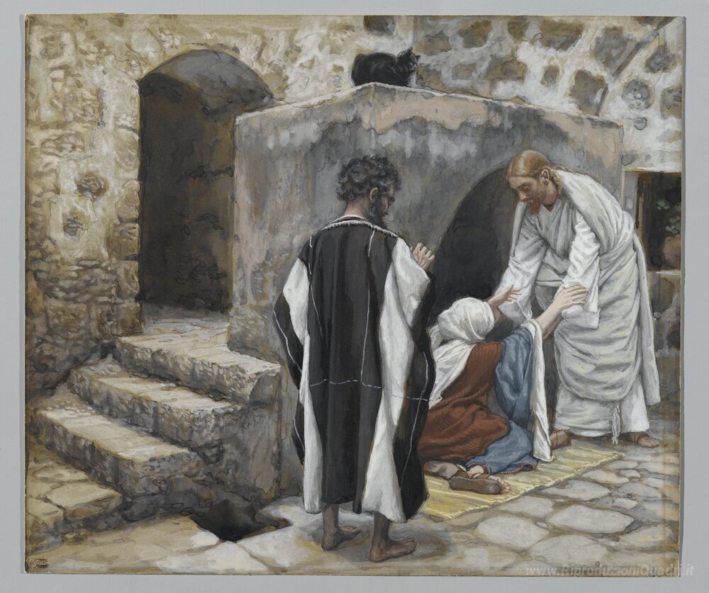 Ti offriamo una riproduzione artigianale su tela dell'opera famosa 'La guarigione di Pietro Mother-in-law (La guérison de la belle-m' di James Tissot, dal Museo delle Riproduzioni.