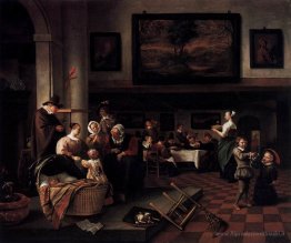 Jan Steen è uno dei più celebri pittori olandesi del seicento, noto per il suo talento unico nel catturare scene di vita quotidiana, spesso intrise di umorismo e vivacità. Le sue opere dialogano con la realtà in modo profondo, mostrandoci momenti di festa, convivialità e a volte anche situazioni più profonde, invitando lo spettatore a riflettere. Ogni dipinto racconta una storia, regalando una visione unica della società del suo tempo.