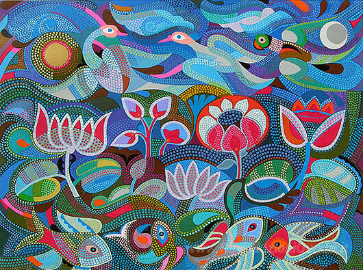 Ti offriamo una riproduzione artigianale su tela dell'opera famosa 'Jal Thal Nabh' di Jyoti Bhatt, dal Museo delle Riproduzioni.