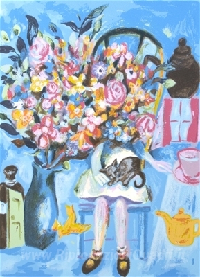 Ti offriamo una riproduzione artigianale su tela dell'opera famosa 'Alice e Fiori' di Charles Blackman, dal Museo delle Riproduzioni.