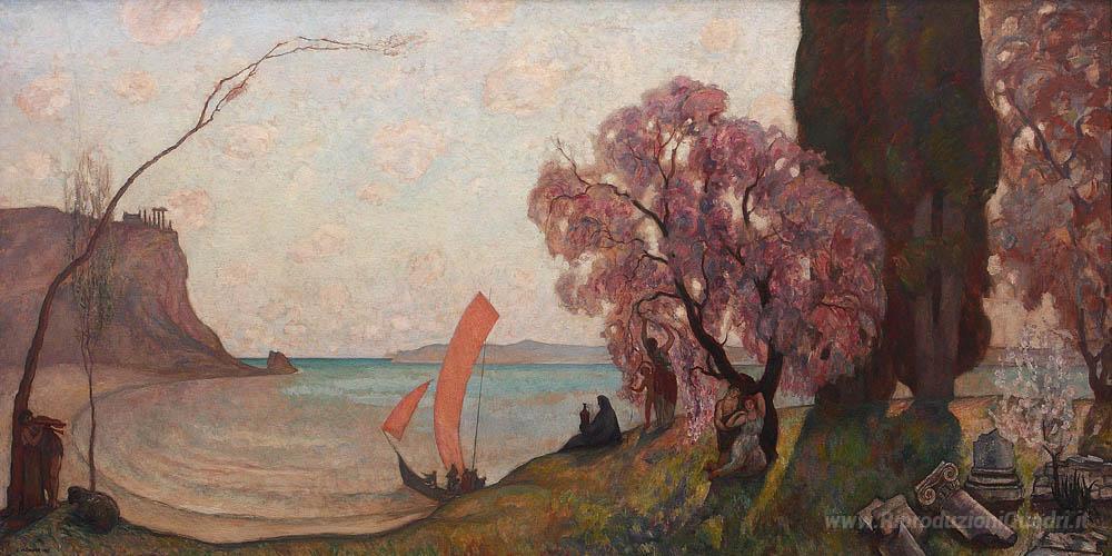 Ti offriamo una riproduzione artigianale su tela dell'opera famosa 'Antique Leggenda' di Samuel Mutzner, dal Museo delle Riproduzioni.