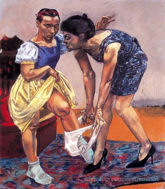 Ti offriamo una riproduzione artigianale su tela dell'opera famosa 'Biancaneve e la matrigna' di Paula Rego, dal Museo delle Riproduzioni.