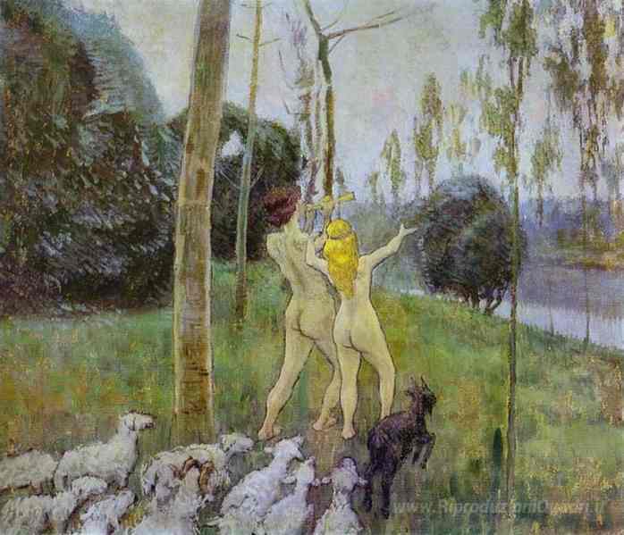 Ti offriamo una riproduzione artigianale su tela dell'opera famosa 'Dafni e Cloe' di Victor Borisov-Musatov, dal Museo delle Riproduzioni.