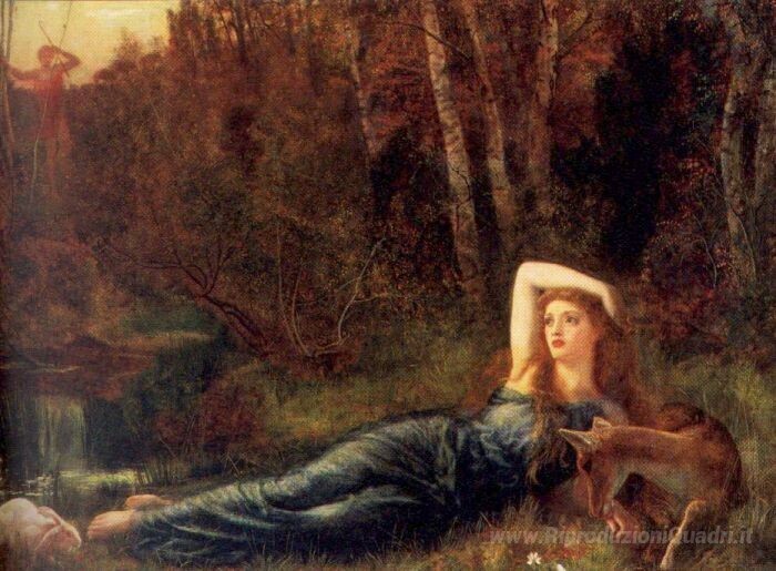 Scopri l'incanto dell'arte con il dipinto a olio Endymion di Arthur Hughes, un maestro dell'arte britannica del XIX secolo. Hughes, noto per il suo stile romantico e dettagliato, cattura l'essenza di una mitologia senza tempo, trasportando lo spettatore in un universo di poesia e sogno. La sua abilità nel rendere la luce e i colori si traduce in un'opera che non solo colpisce, ma emoziona profondamente.