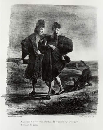 Ti offriamo una riproduzione artigianale su tela dell'opera famosa 'Faust, tragedia di Goethe' di Eugene Delacroix, dal Museo delle Riproduzioni.