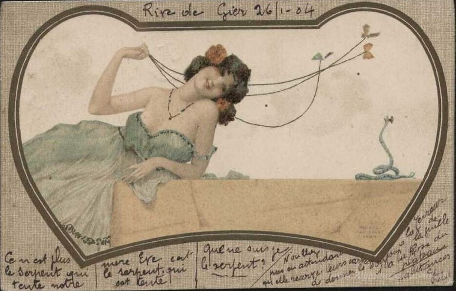 Ti offriamo una riproduzione artigianale su tela dell'opera famosa 'Favole' di Raphael Kirchner, dal Museo delle Riproduzioni.