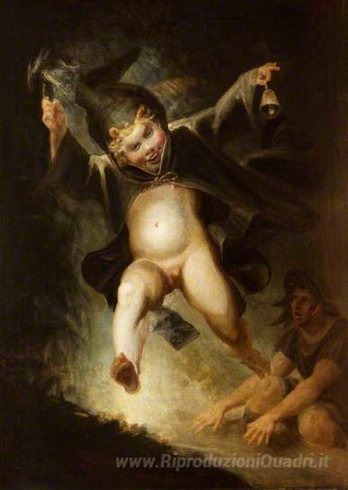 Ti offriamo una riproduzione artigianale su tela dell'opera famosa 'Frate Puck' di Henry Fuseli, dal Museo delle Riproduzioni.