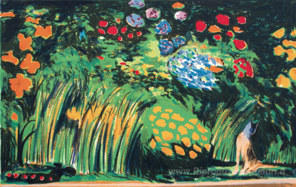 Ti offriamo una riproduzione artigianale su tela dell'opera famosa 'Giardino bianco del gatto' di Charles Blackman, dal Museo delle Riproduzioni.