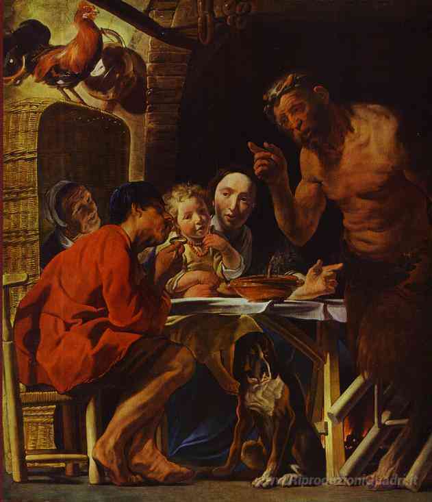 Ti offriamo una riproduzione artigianale su tela dell'opera famosa 'I contadini e il Satiro' di Jacob Jordaens, dal Museo delle Riproduzioni.