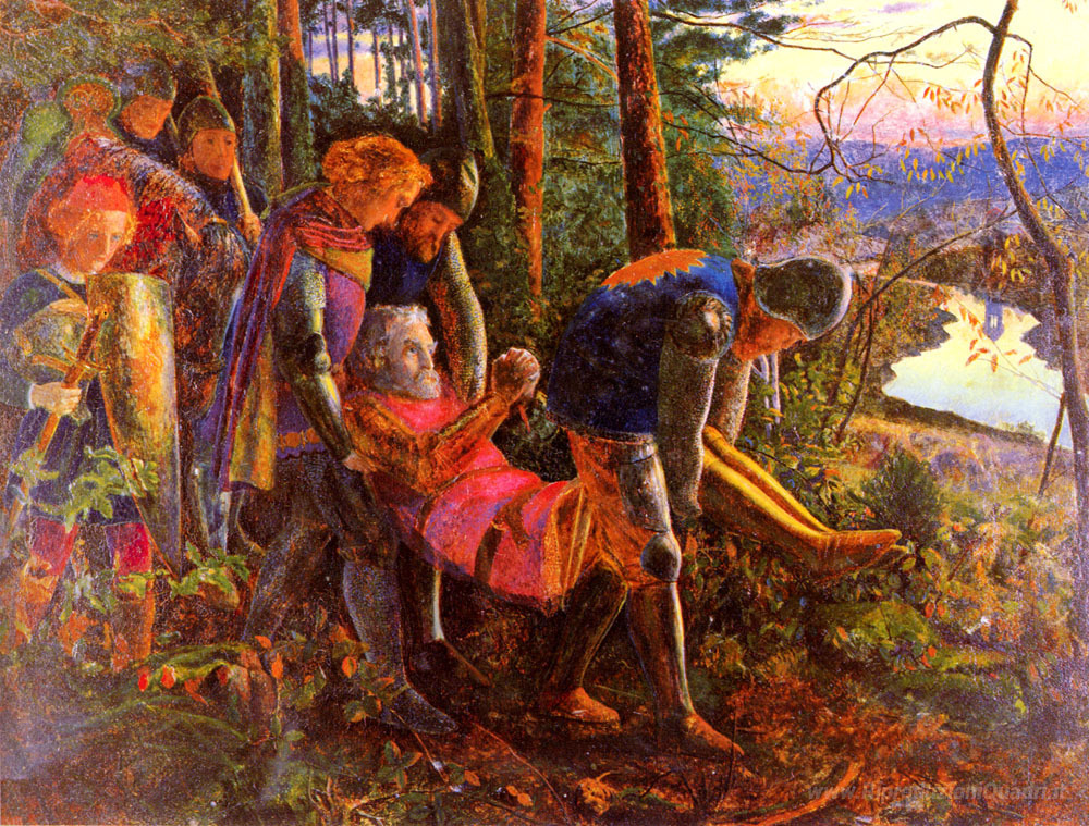 Ti offriamo una riproduzione artigianale su tela dell'opera famosa 'Il Cavaliere del Sole' di Arthur Hughes, dal Museo delle Riproduzioni.