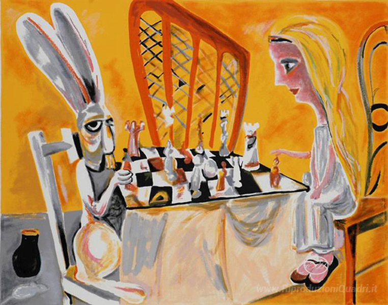 Ti offriamo una riproduzione artigianale su tela dell'opera famosa 'Il gioco degli scacchi' di Charles Blackman, dal Museo delle Riproduzioni.
