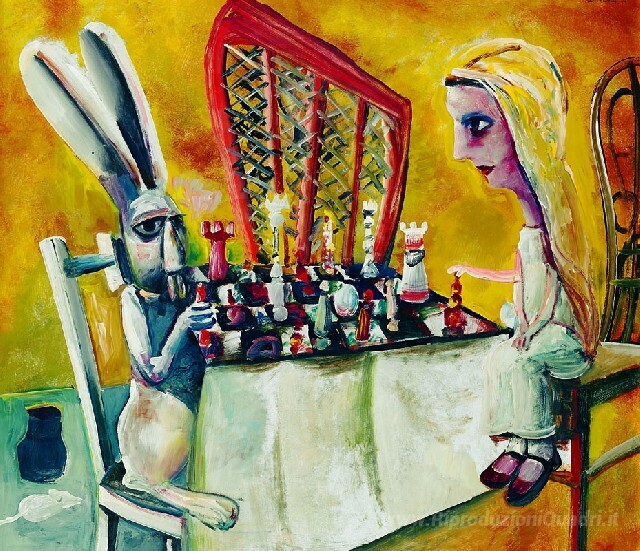 Ti offriamo una riproduzione artigianale su tela dell'opera famosa 'Il gioco degli scacchi' di Charles Blackman, dal Museo delle Riproduzioni.