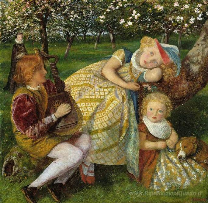 Ti offriamo una riproduzione artigianale su tela dell'opera famosa 'Il Re del frutteto' di Arthur Hughes, dal Museo delle Riproduzioni.