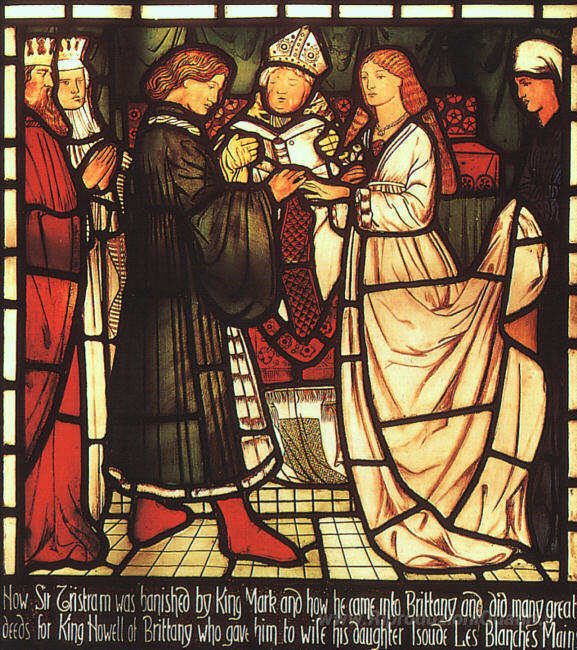 Ti offriamo una riproduzione artigianale su tela dell'opera famosa 'Matrimonio di Sir Tristram' di Edward Burne-Jones, dal Museo delle Riproduzioni.