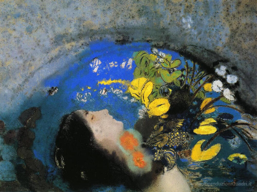 Ti offriamo una riproduzione artigianale su tela dell'opera famosa 'Ophelia' di Odilon Redon, dal Museo delle Riproduzioni.