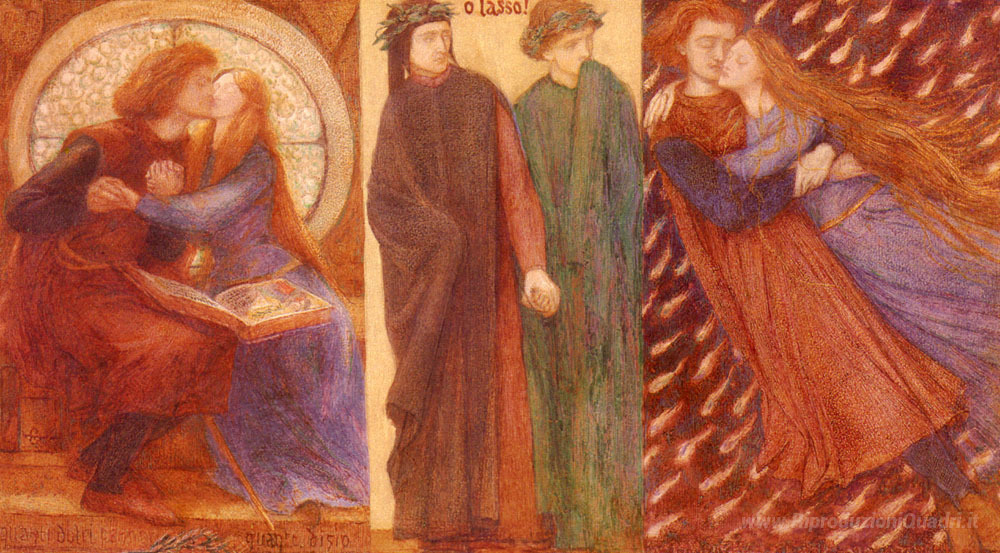 Ti offriamo una riproduzione artigianale su tela dell'opera famosa 'Paolo e Francesca da Rimini' di Dante Gabriel Rossetti, dal Museo delle Riproduzioni.