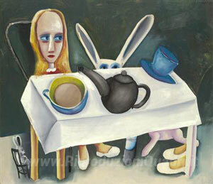 Ti offriamo una riproduzione artigianale su tela dell'opera famosa 'Piedi sotto il tavolo' di Charles Blackman, dal Museo delle Riproduzioni.