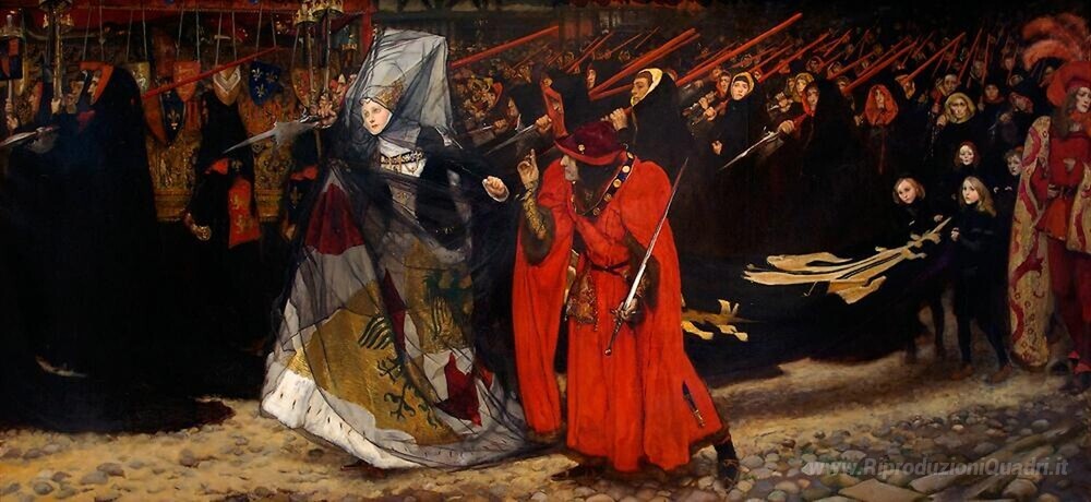 Ti offriamo una riproduzione artigianale su tela dell'opera famosa 'Riccardo, duca di Gloucester, e la Lady Anne' di Edwin Austin Abbey, dal Museo delle Riproduzioni.
