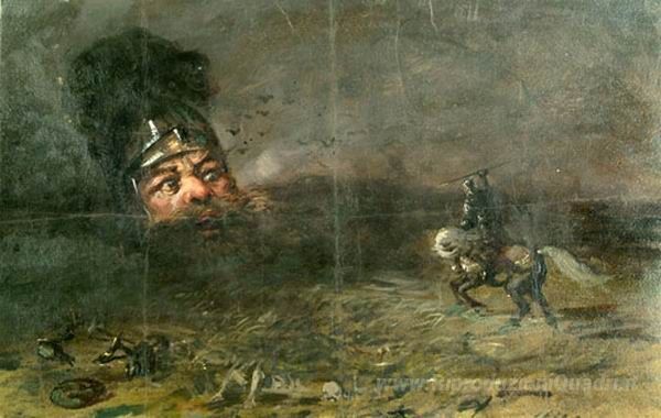 Ti offriamo una riproduzione artigianale su tela dell'opera famosa 'Ruslan e Lyudmila' di Nikolai Ge, dal Museo delle Riproduzioni.
