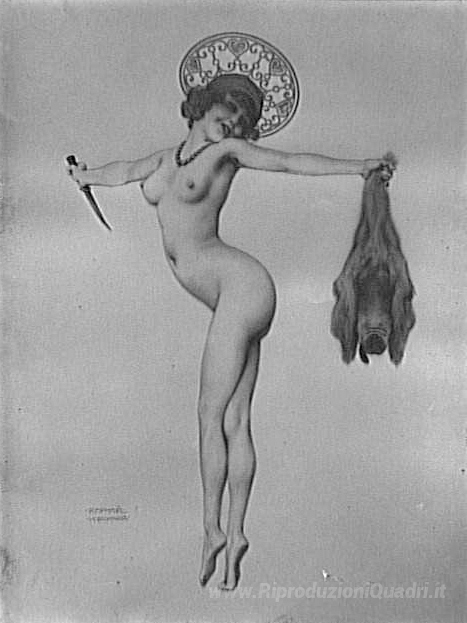 Ti offriamo una riproduzione artigianale su tela dell'opera famosa 'Salome' di Raphael Kirchner, dal Museo delle Riproduzioni.